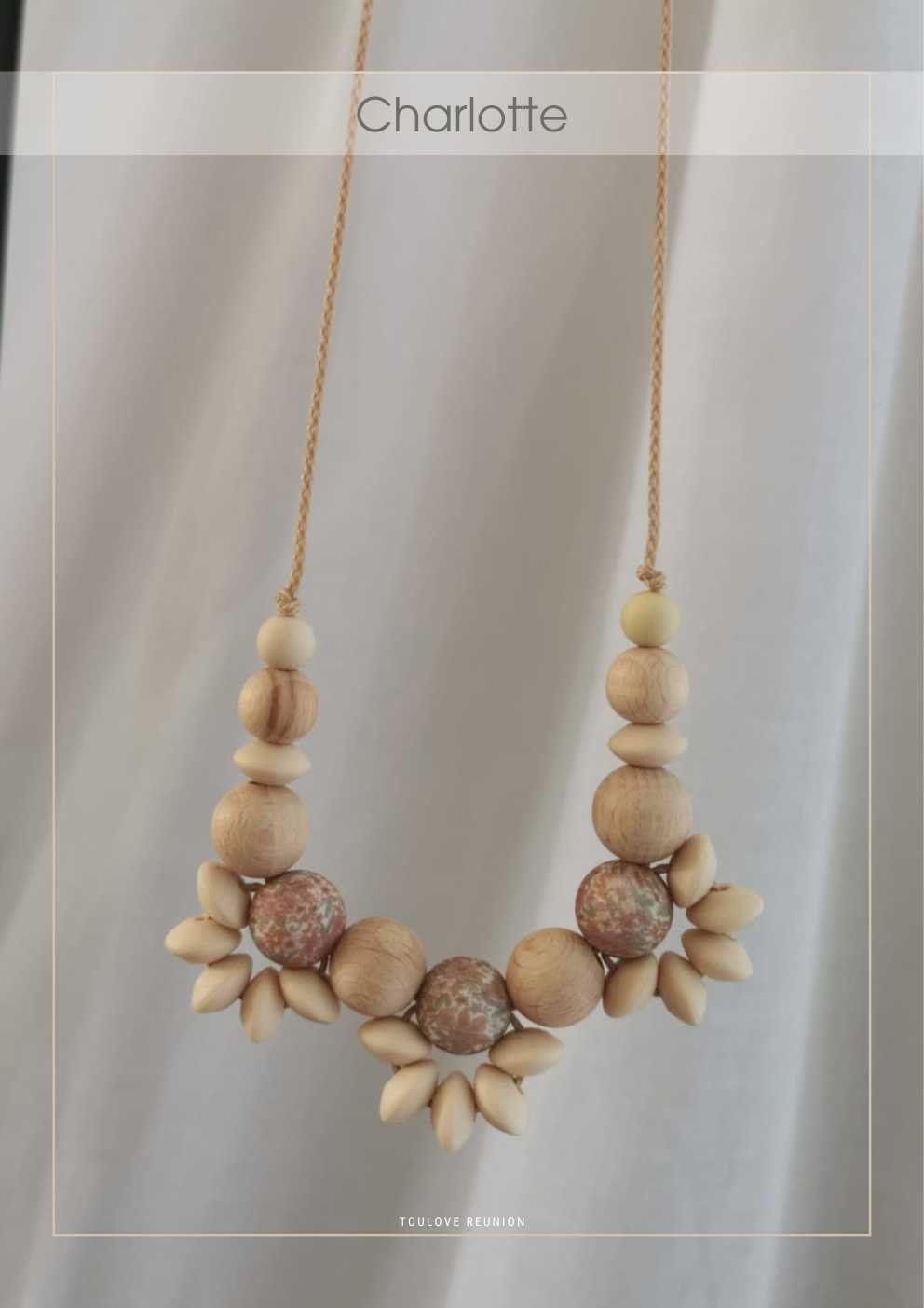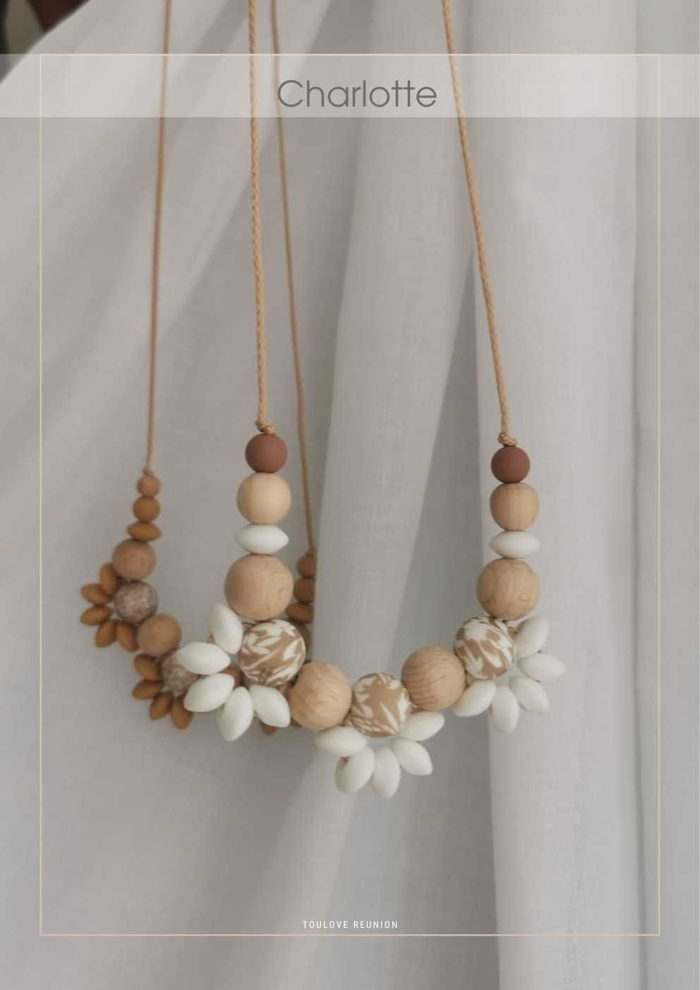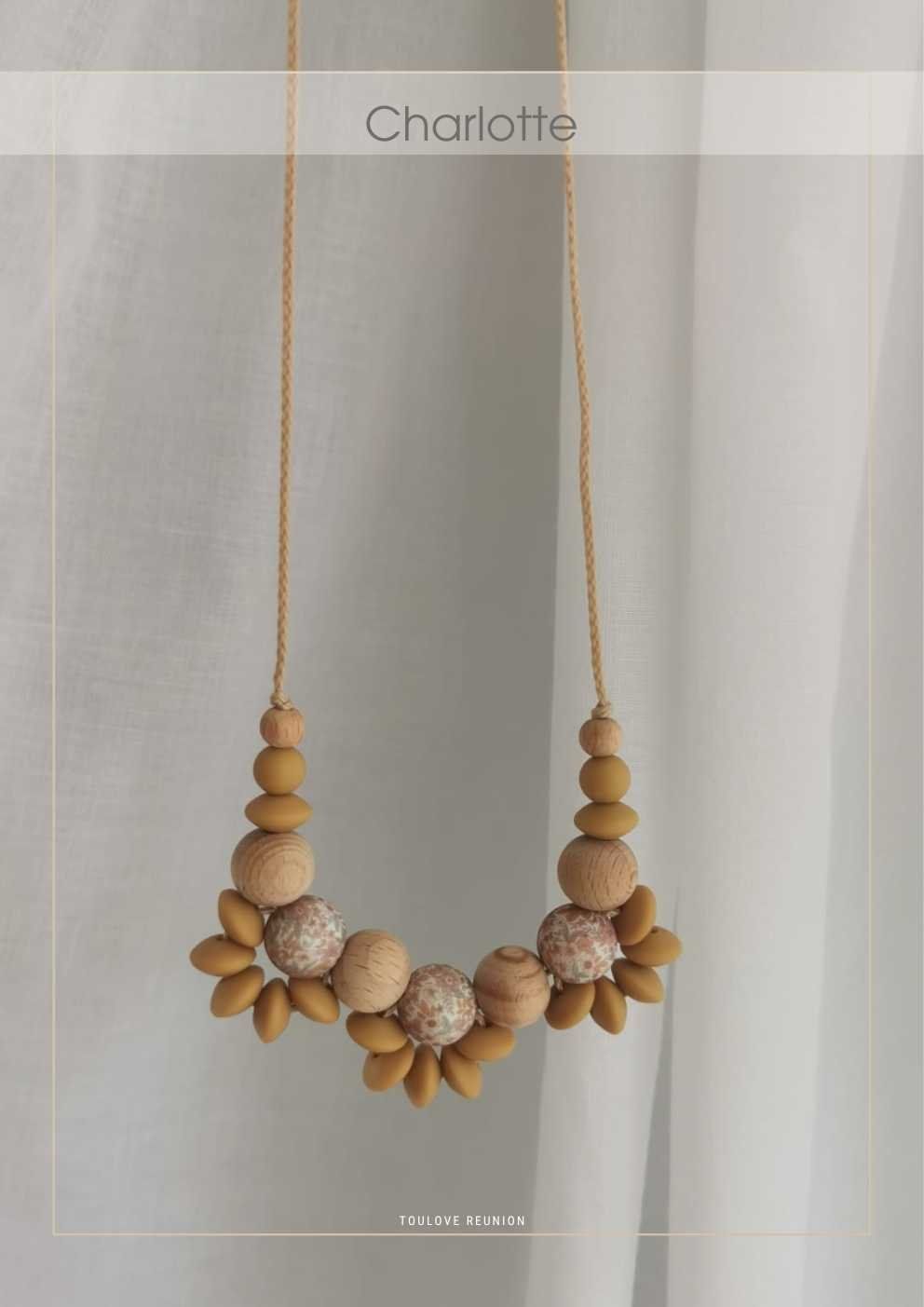 « Charlotte » est le collier de maternité raffiné par excellence 🌸 Élégant pour maman, sensoriel pour bébé, il accompagne allaitement, portage et éveil avec douceur.