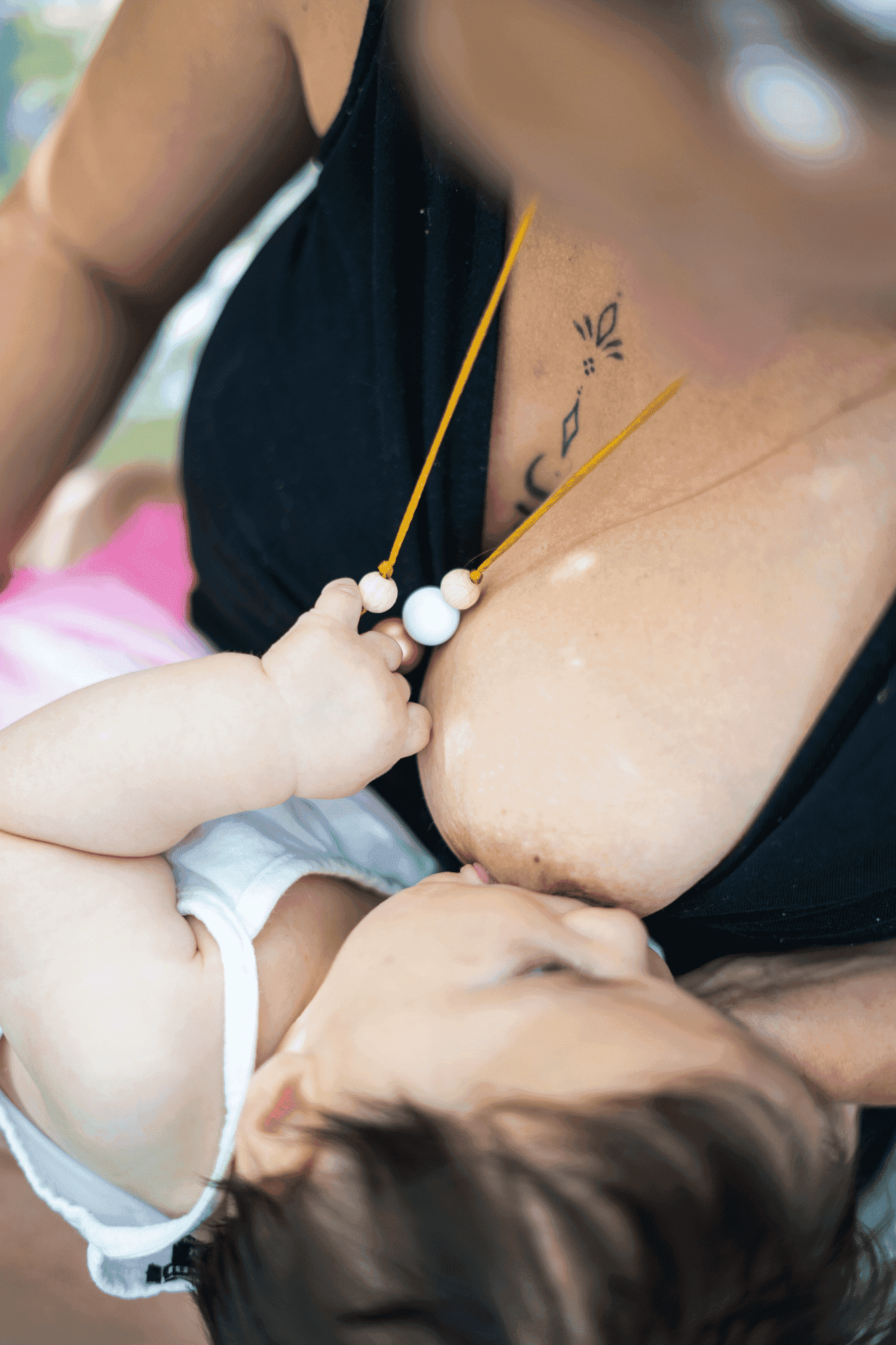 Avec un collier de maternité TouLové, qu’il se love dans votre cou pour un câlin, au creux de vos bras lors du biberon ou de l’allaitement, ou encore lorsque vous jouez ensemble sur le tapis d’éveil, ce qui pend à votre cou devient une occasion d’exploration intense et non plus un interdit.